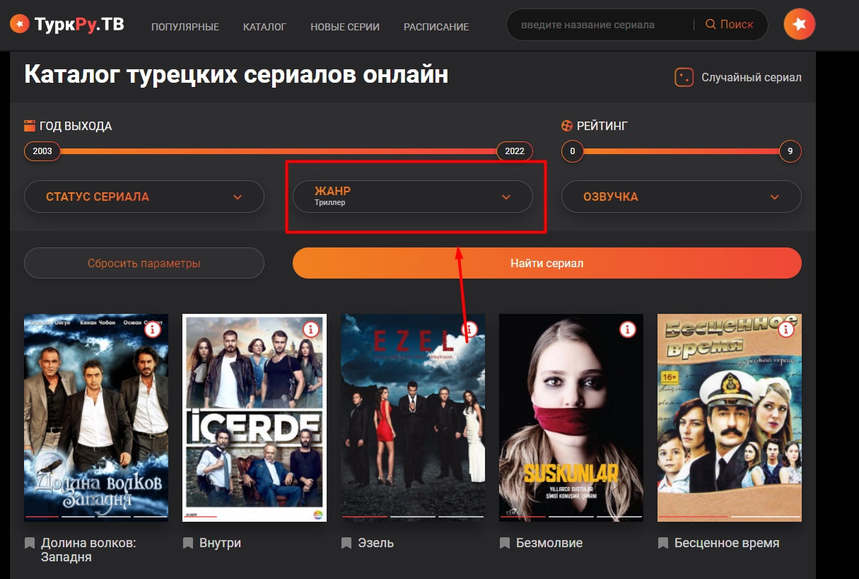 trkrutv.cc/catalog/ Ищите по нужному жанру